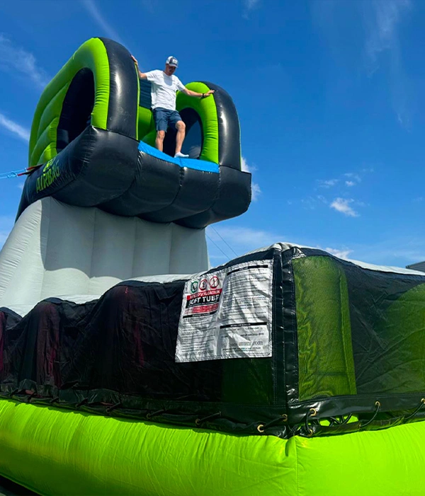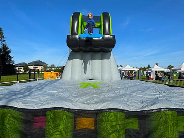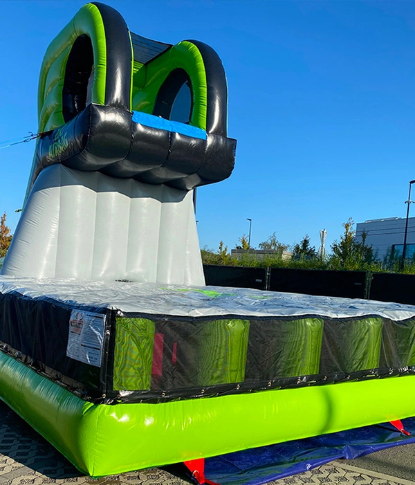 Lorsque l’on grimpe le toboggan gonflable, l’excitation nous envahie puis une fois sur le point culminant de la structure, l’adrénaline nous pousse à nous envoler.
