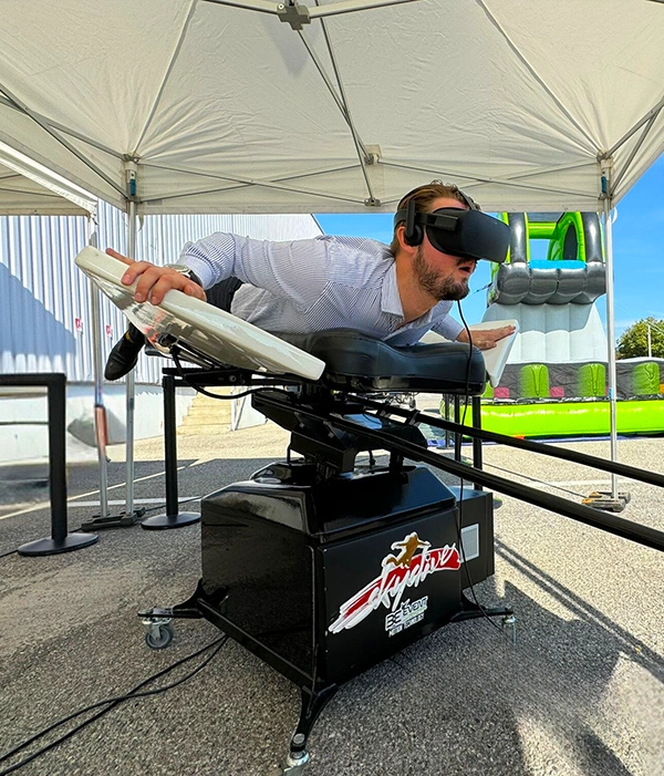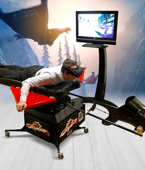 Découvrez le saut en wingsuit/ Skydiving sans quitter le sol grâce à notre simulateur ultra-réaliste.Notre simulateur recrée les sensations uniques du vol en combinaison ailée, vous propulsant à travers les airs à une vitesse vertigineuse. Grâce à notre simulateur de vol, il vous sera possible de survoler forêts, lacs et montagnes en toute plénitude.
