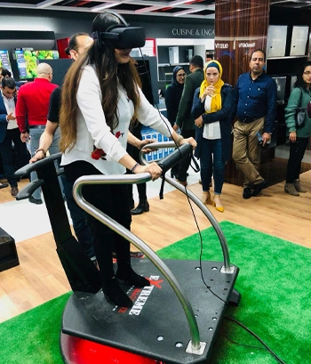 Notre simulateur VR de l’extrême offre une interaction avec le virtuel grâce à un casque oculus permettant une vue à 360°.